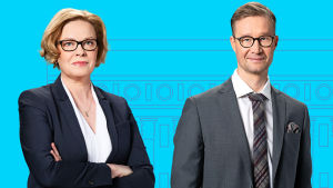 Seija Vaaherkumpu ja Sakari Sirkkanen juontavat suuret vaalikeskustelut.Kuva: Jyrki Valkama