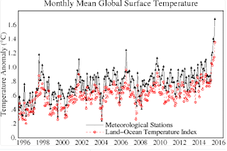 Kun joulukuussa Pariisin ilmastokokouksessa päätettiin pyrkimyksestä rajoittaa seuraavien vuosikymmenten toimepiteillä maapallon lämpötilan nousu 1.5 asteeseen, meni vain kaksi kuukautta ja ja raja meni jo rikki! Kyseessä on toki vain yhden kuukauden mittaustulos, mutta asiantuntijat ovat tyrmistyneitä.