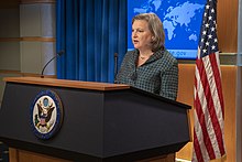 [19] While serving as the Department of State's lead diplomat on the Ukraine crisis, Nuland pushed European allies to take a harder line on Russian expansionism.