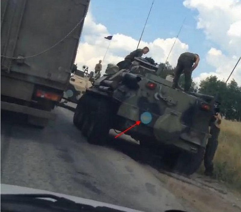 The Interpreter reports that it has found several pictures and a video showing Russian armored vehicles bearing the insignia “MC,” an abbreviation of the Russian words