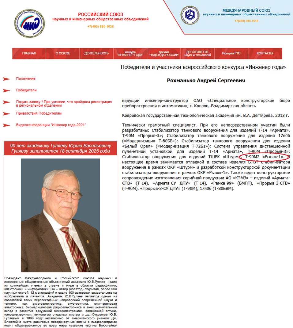 reference in the Russian Union of Scientific and Engineering Public Associations listing a lead design engineer as one of the developers of the T-90M2 “Ryvok-1,” which translates as “Dash-1.” While the evidence was indirect and somewhat unconventional, it nonetheless offered credible confirmation of the T-90M2’s existence.