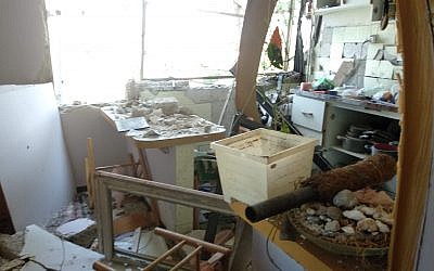 An apartment on the second floor of a building in Ashkelon that suffered a direct hit from a rocket fired from Gaza on November 13, 2018. (Melanie Lidman/Times of Israel)